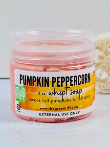 Step into the fall season with a bounty of freshly roasted sweet pumpkin pie pumpkins and roasted fall spices including ~ cloves, nutmeg and cinnamon. Whether you are a fan of pumpkin or not, this spicy Whipt Soap is definitely a delight to use in the shower.